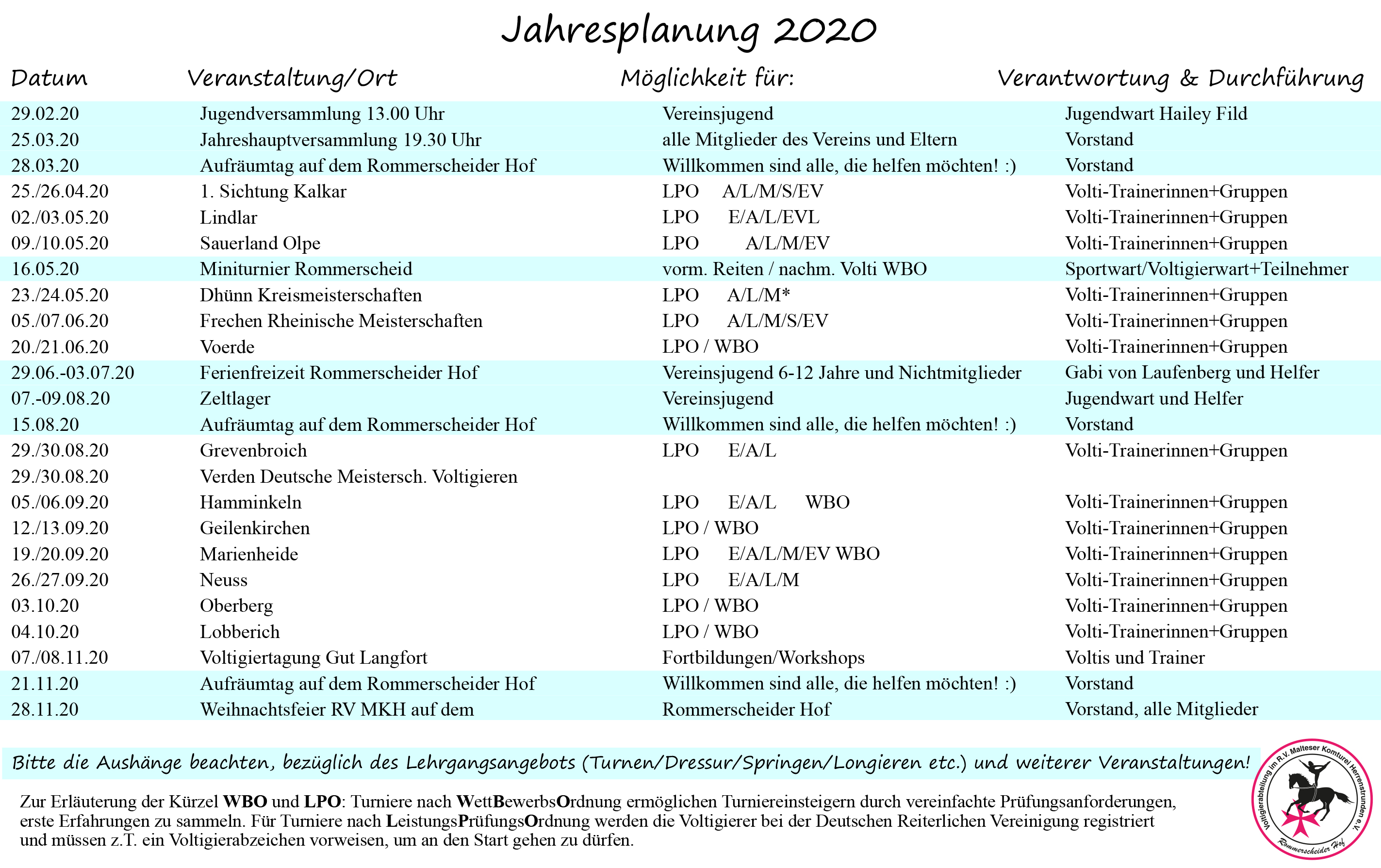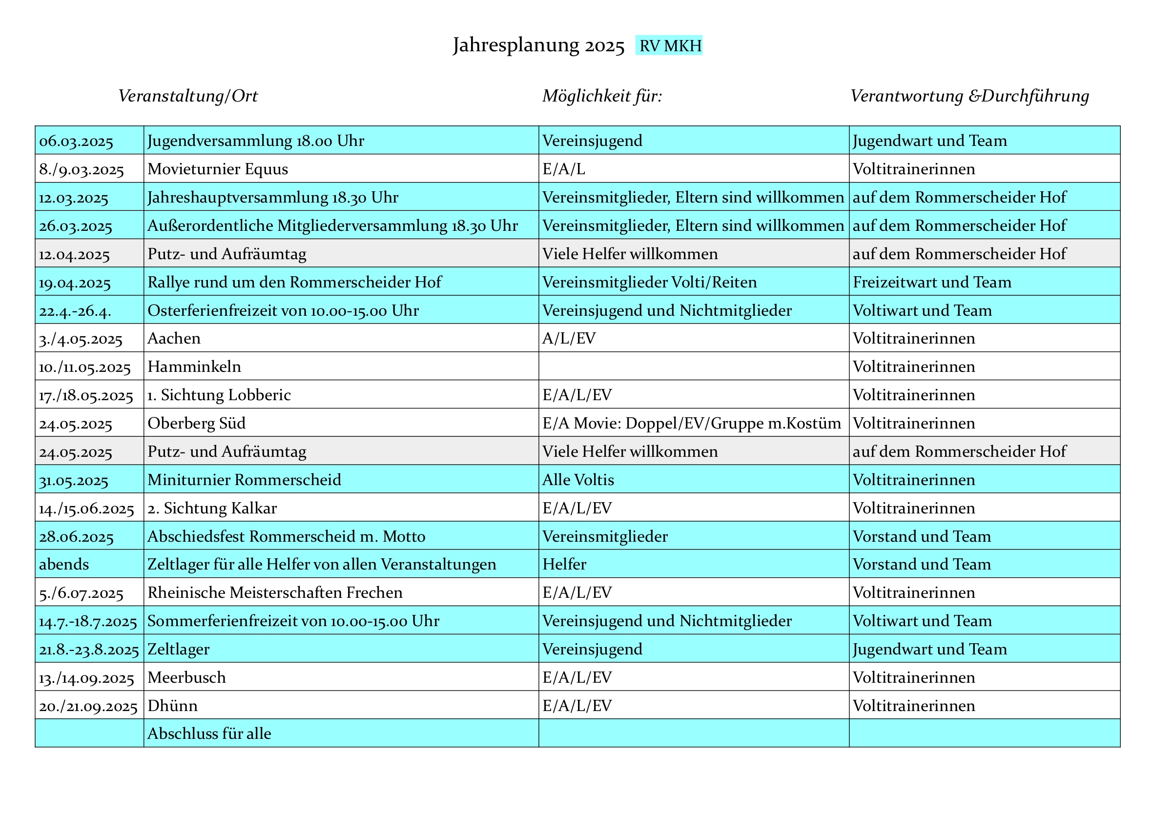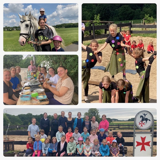 Die Kinder werden täglich von 10.00Uhr bis 15.00Uhr von uns betreut. Auf dem Programm stehen sowohl Praxis als auch Theorie rund um die Themen Reiten, Voltigieren und Pferdekunde. Aber auch eine Rallye und einige Spieleinheiten sorgen für jede Menge Spaß. Für die Teilnahme berechnen wir 200€, darin sind ebenfalls Snacks, Getränke und ein tägliches Mittagessen enthalten. Die Anmeldung erfolgt per Mail unter rv-mkh@arcor.de.