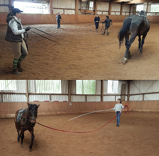 Vorbereitet hatten wir uns zwei Wochen vorher schon etwas durch den Longier-Lehrgang, bei dem wir erste Erfahrungen mit der Doppellonge und dem Langzügel machen konnten.