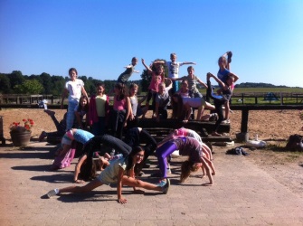 Anschließend sind wir in die Halle um dort zum Aufwärmen ein Fang-Spiel zu spielen. Als dann alle schön warm waren, sind wir zu den Hauptthemen des Lehrgangs gekommen. Diese waren Vertrauen, Holzpferd, Spannung, Turnen und unser Vereinstanz! Besonders viel Spaß hatten die Kids beim Bauen einer menschliche Pyramide. Jeder durfte mal Obermann- aber auch Untermann sein – ganz wichtig war natürlich auch die Hilfestellung neben der gebauten Pyramide.