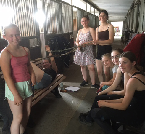 Die Woche startete mit tollem Wetter und gut gelaunten Helfern. Nach einer kurzen Kennenlernrunde und einer gemeinsamen Regelbesprechung ging es direkt auf’s Pferd - voltigieren stand auf dem Plan.