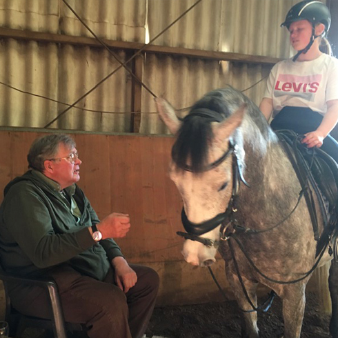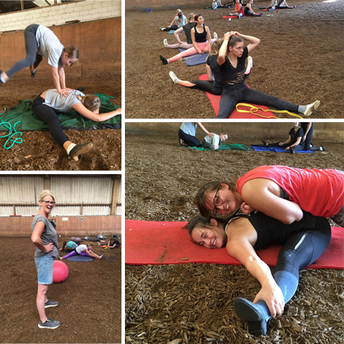 Wir starteten zuerst mit einem Theorieteil „Funktionelle Anatomie des Pferdes“. Unsere Trainer, Helfer und Reiter konnten anhand eines Skelettes einer Pferde-Wirbelsäule lernen, welche Sehnen, Bänder und Muskeln dort ansetzen und wie sie miteinander verbunden sind,wie sie je nach Bewegung beansprucht werden und wie man sie besser trainieren und gesund erhalten kann, zum Beispiel auch durch Dehnen und Massieren.
