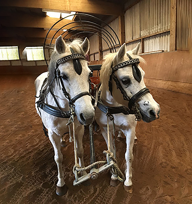 Gereon erläuterte uns an diesem Sonntag nun das Fahrgeschirr und zeigte uns das Anlegen von diesem an seinen beiden Ponies Conni und Cosima.
